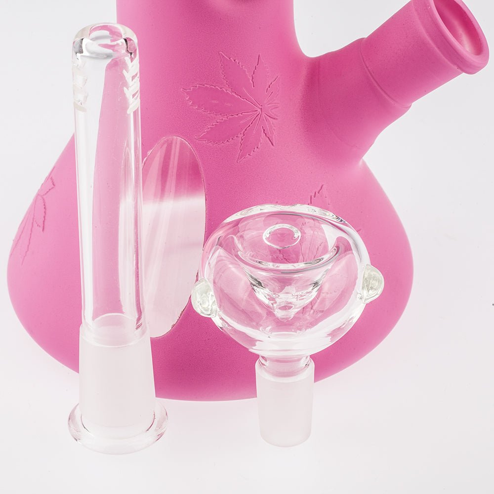 10" Pink Beaker Bong W/ 3D Leaf Print