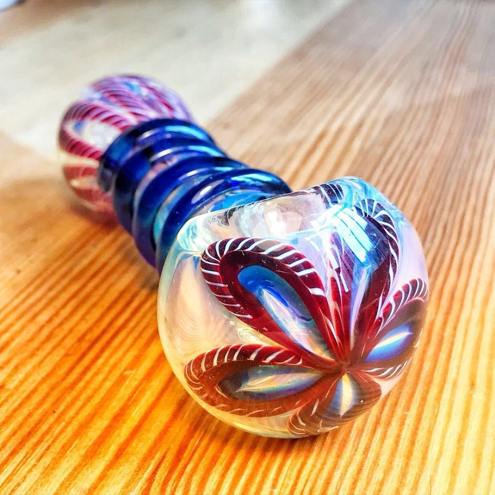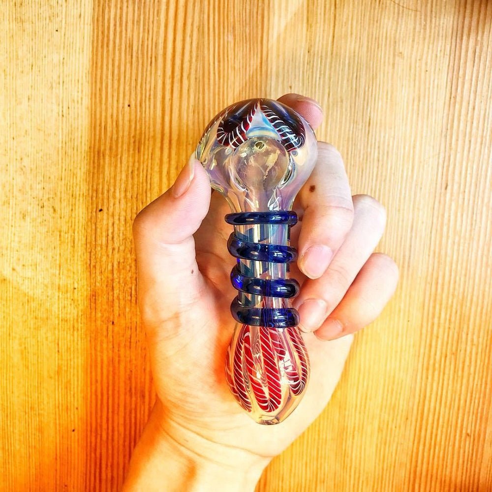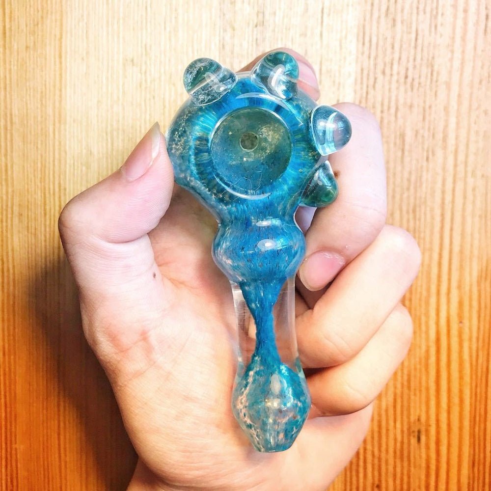 Nano Fumed Glass Spoon Pipe w/ Colored Raised Marbles