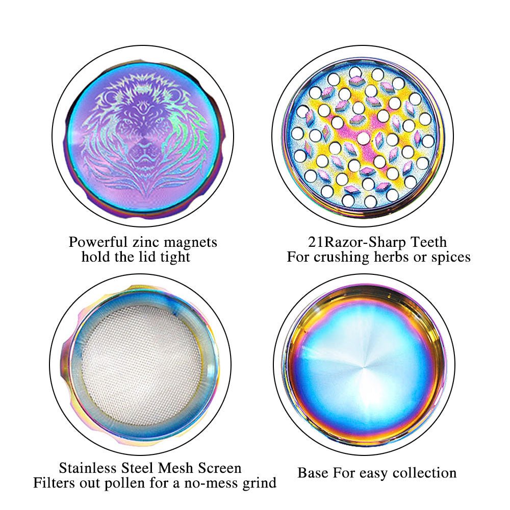 Rainbow Magnetic Lid Zinc Alloy Herb Grinder 4 Piece