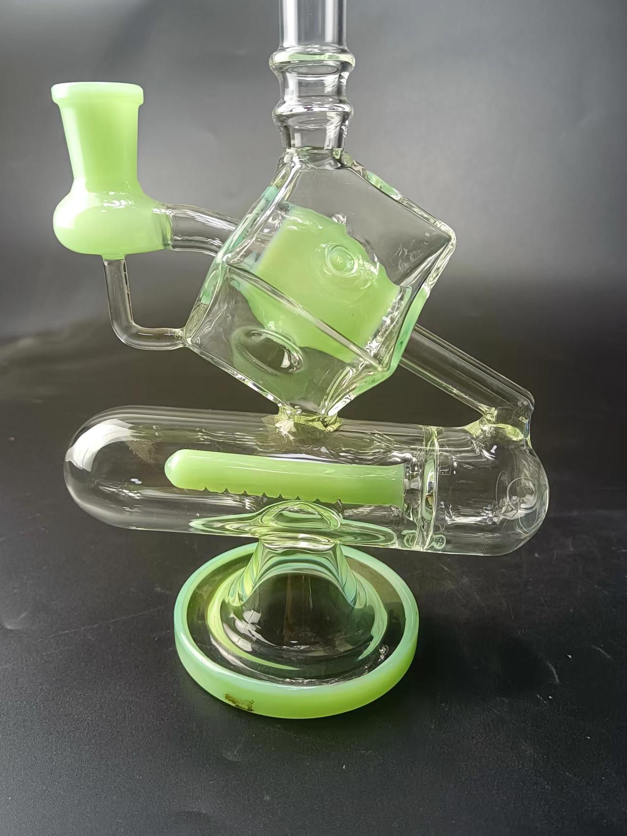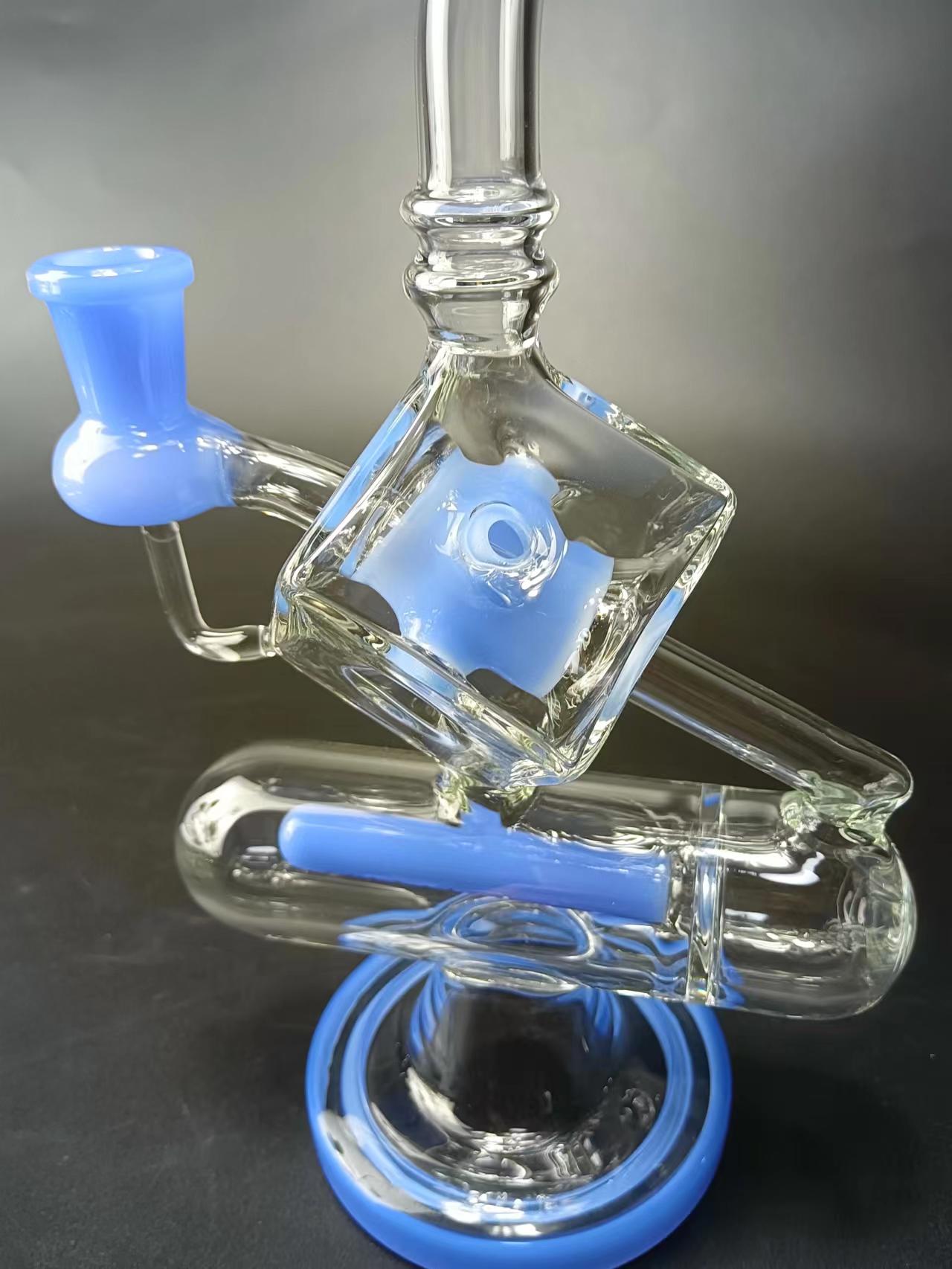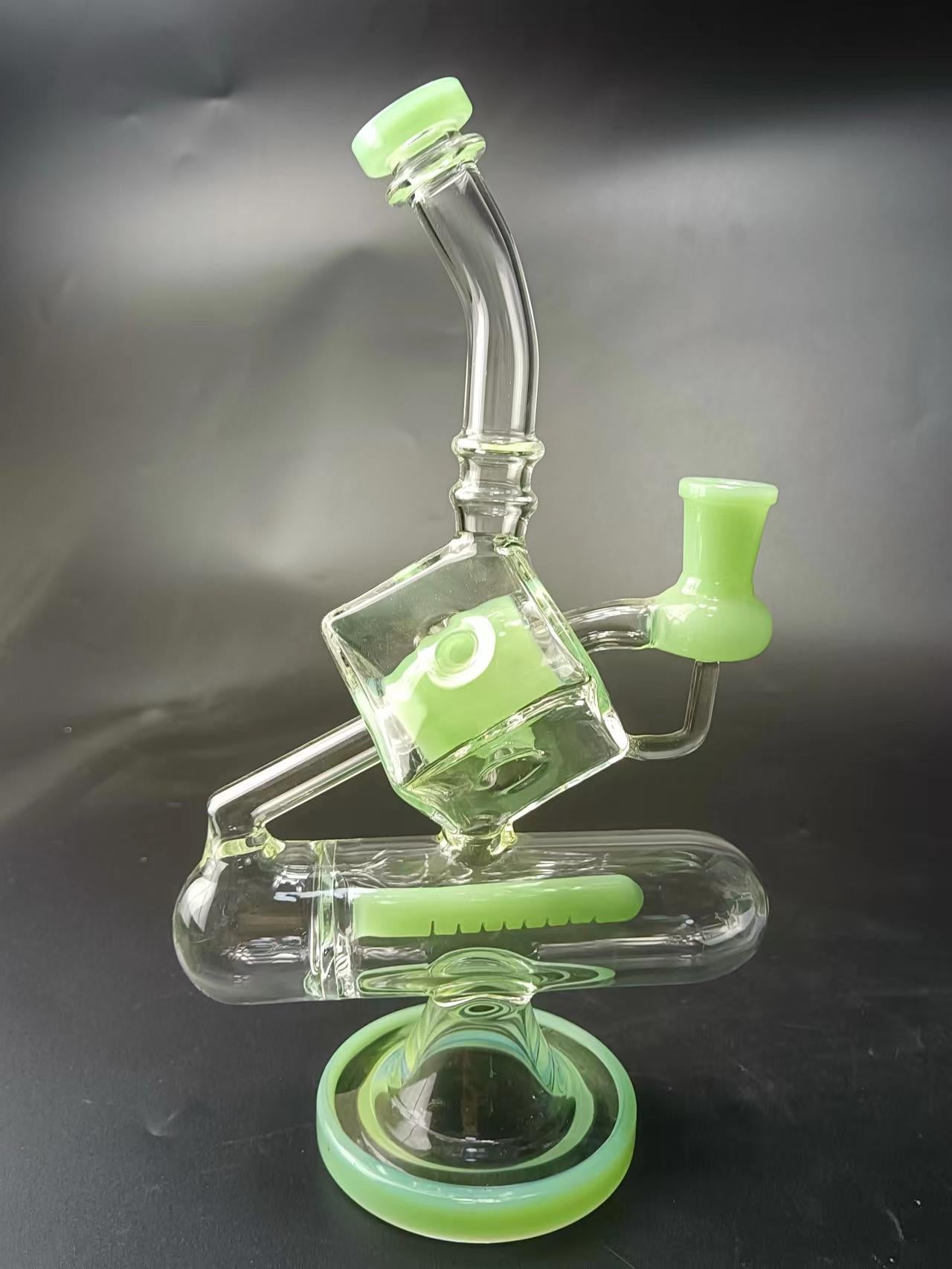 9" Cube Glass Recycler Dab Rig