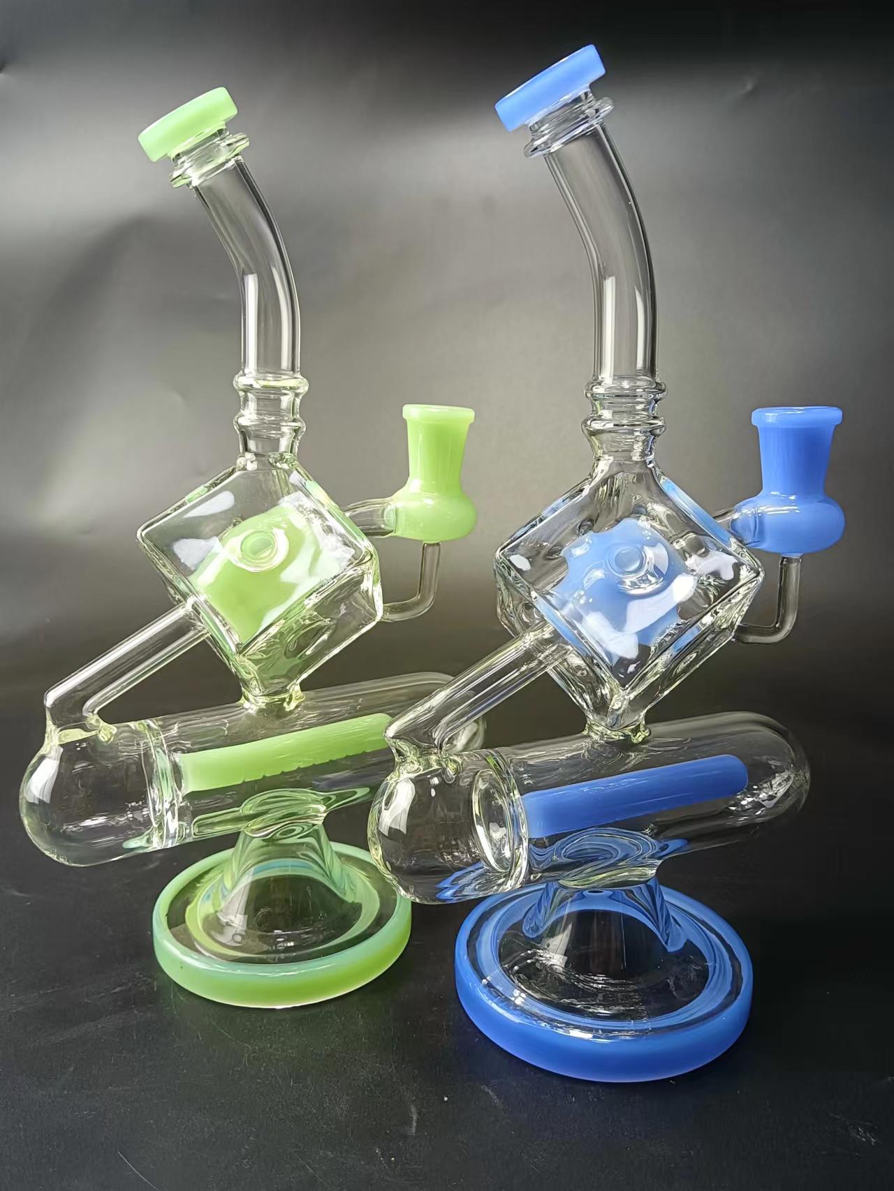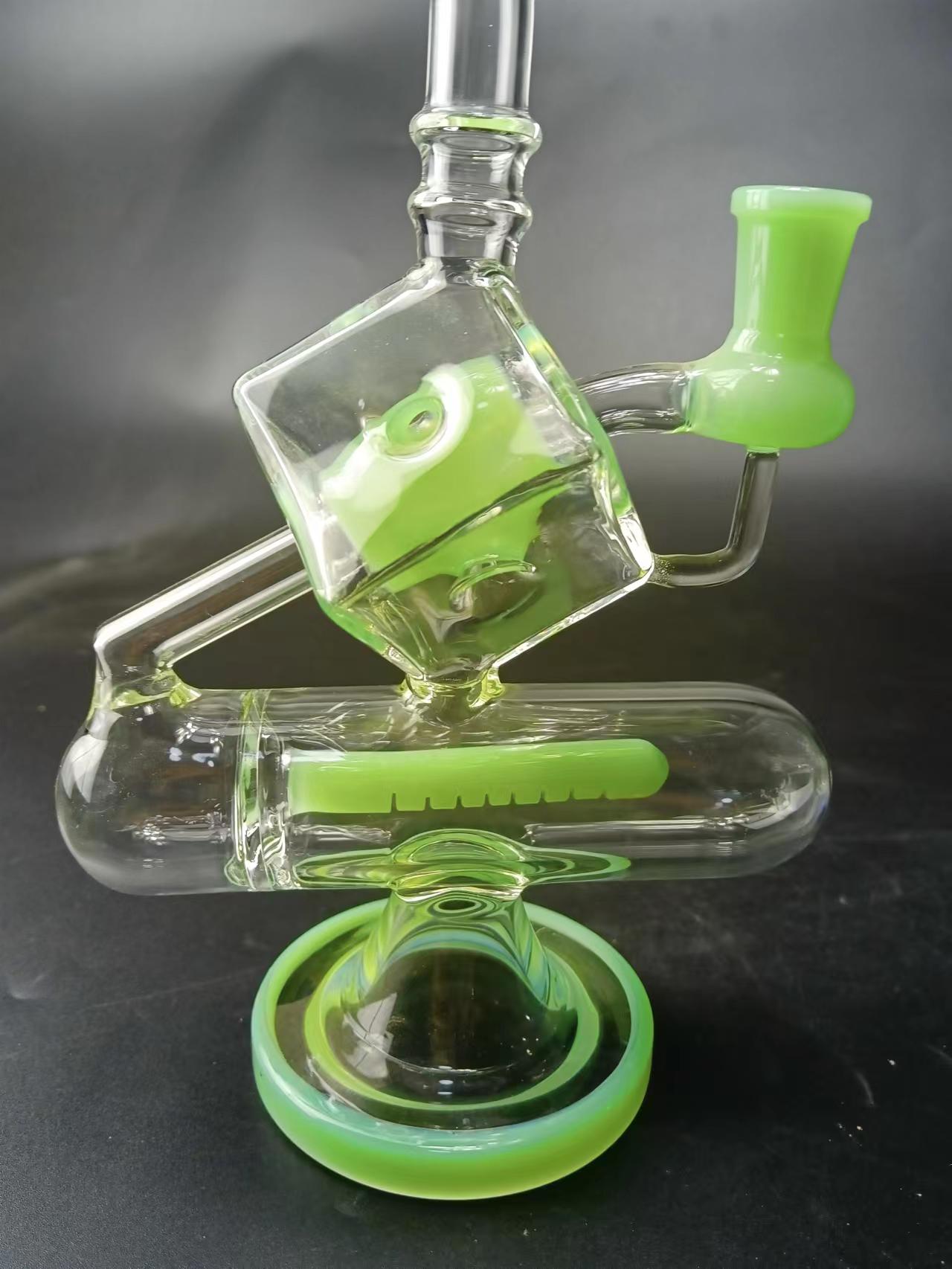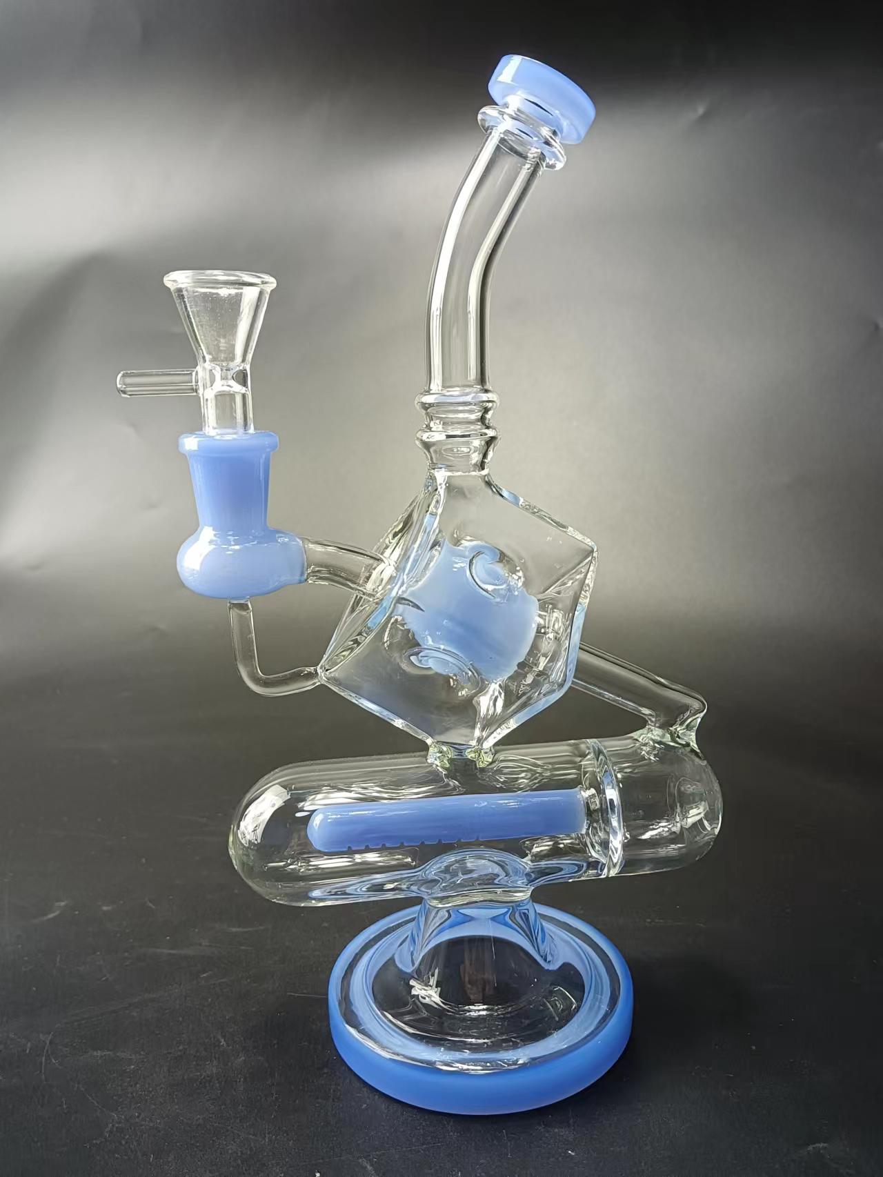 9" Cube Glass Recycler Dab Rig
