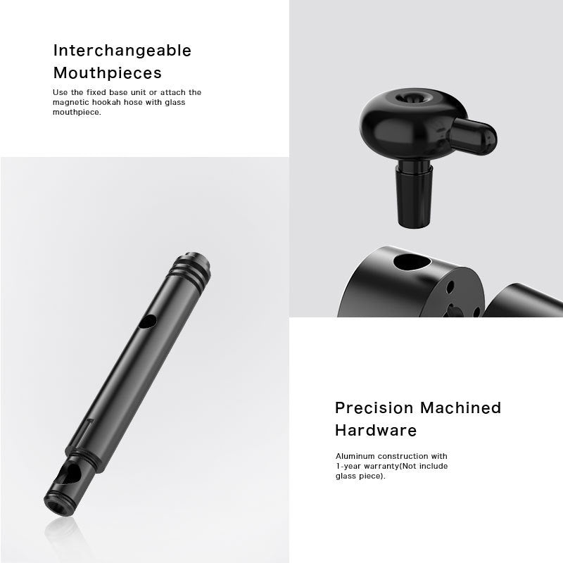 At the top of the dab piece is a mouthpiece which can be removed to add water or to be able to reach in and clean. The glass cylinder in the dab rig acts as the fill for the windows on the sides of the rocket.